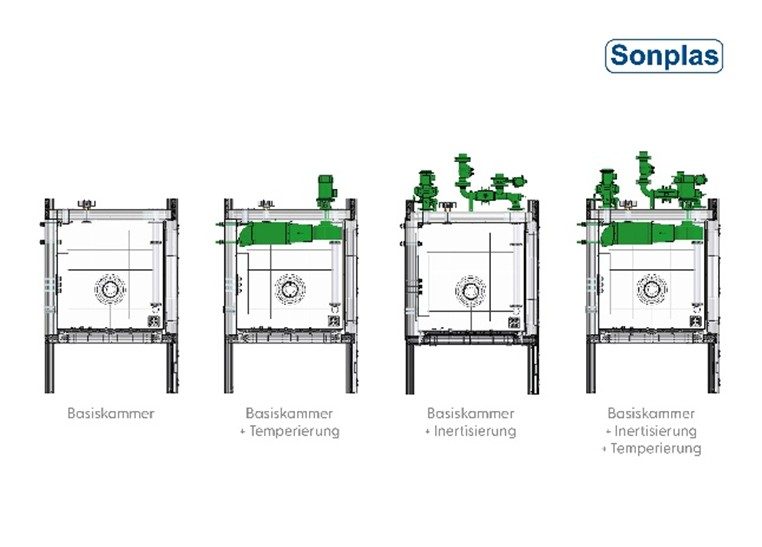 基础试验箱可根据需求提供带隔热或不带隔热的版本,也可以作为纯粹的防护外壳使用。同时,温控系统和惰性化系统均可随时扩展升级。Sonplas 提供的恒温试验箱既可以作为集成在整机中的解决方案,也可以作为具有成本优势的独立版本使用。“我们的一些客户并不需要一开始就投资昂贵的定制化设备,而是更希望先获得一个具备惰性化和温控能力的防护外壳。具体的测试装置通常由客户自行集成,”Sonplas 专家解释道。“正因为如此,我们将恒温试验箱设计为模块化结构。”
