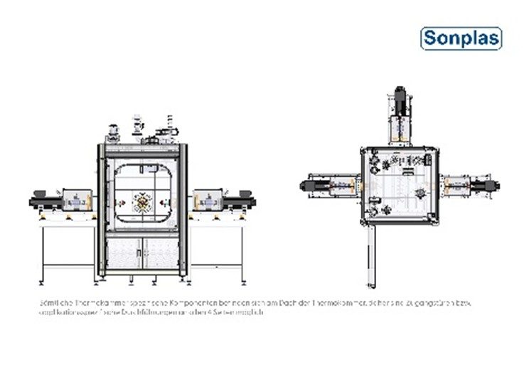 与传统恒温试验箱将温控系统直接集成在腔体内部不同,Sonplas 采用外置温控方案,并支持灵活选择不同设备。这些温控设备可以安装在距离试验箱一定距离的位置,例如单独的设备间内。在 Sonplas 恒温试验箱内部,仅配置一个紧凑型换热器,从而为复杂的测试结构提供最大的可用空间。这一方案的优势还体现在高度的可扩展性:温控系统可根据需求随时升级——既可以仅用于加热,也可以扩展为加热与冷却一体,并支持不同功率等级。在安全方面,该设计同样具备明显优势:与传统电加热棒不同,该系统可确保试验箱内部表面温度不会达到临界点火温度。